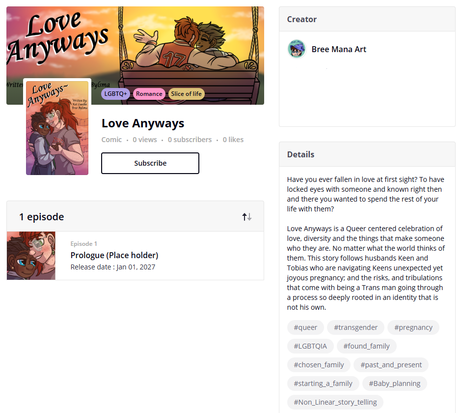 SupportHowdy! My Name's Bree! I'm A Queer, Disabled artist from Canada that wants to tell stories about things that affect me and the communities I am part of! My art is an expression of our collective beauty and I hope it helps those who need it feel represented and heard.