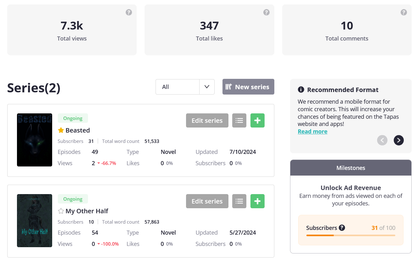 If you have a moment, it would mean the world to me if you could swing by my comic. If you do find you like it pls pls pls give it a sub 🥹🥹🥹🥹 thanks and good luck on your tapas journey!