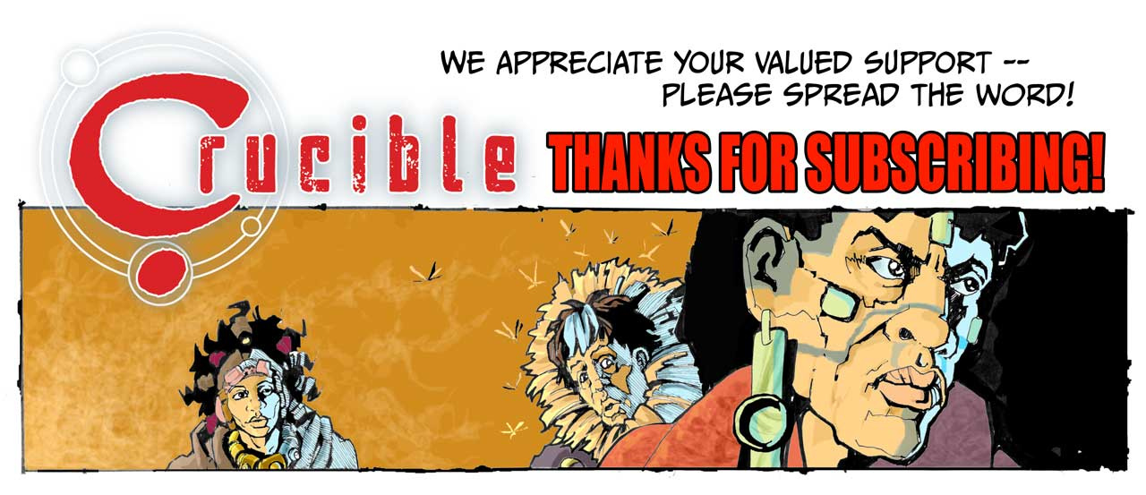Thanks very much for subscribing to Crucible! A new episode of Crucible will be published this Thursday. Please do check out Crucible over on my British comics web site, downthetubes.net where you can also leave us feedback - http://downthetubes.net/?page_id=22657