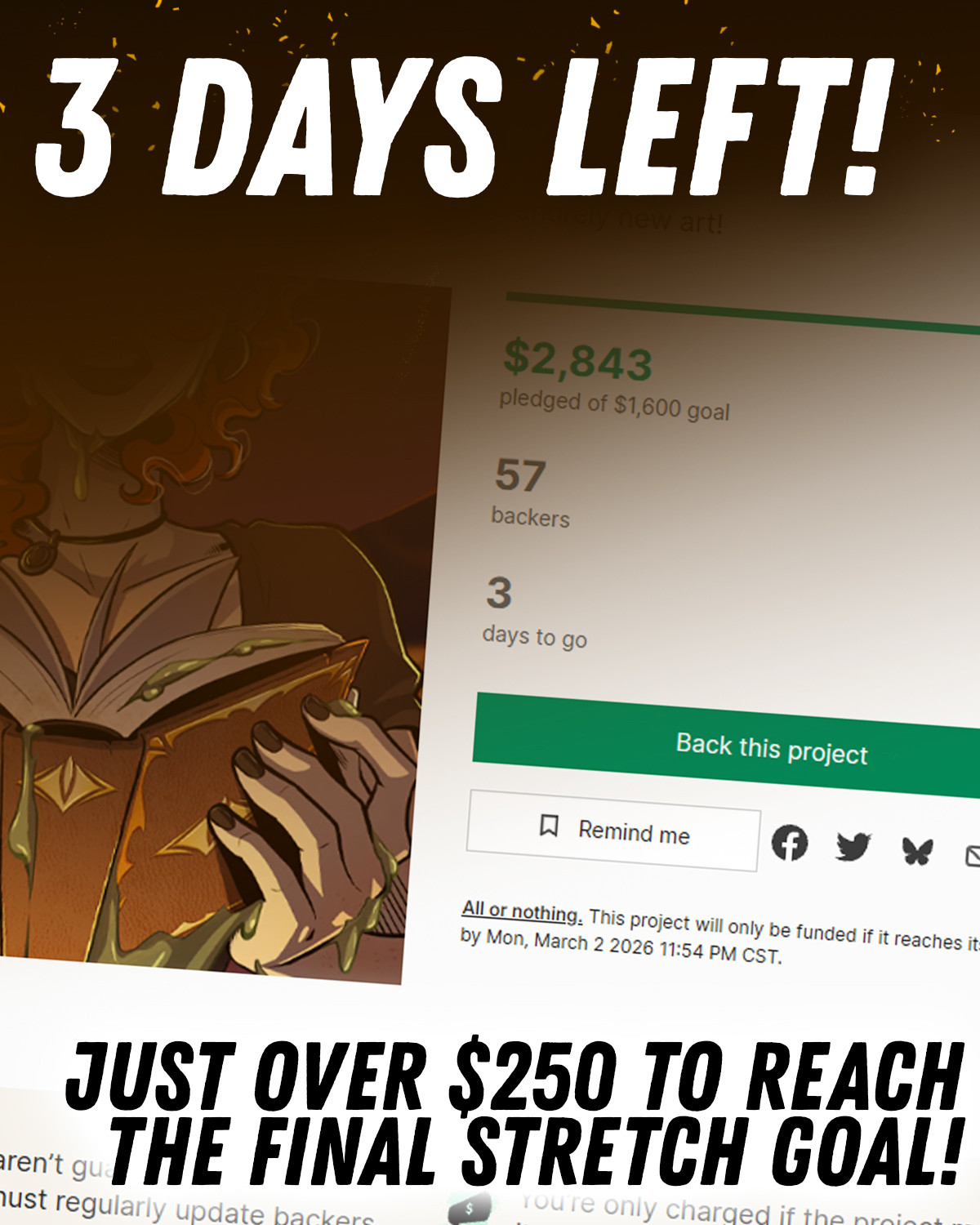 Only 3 days left of my Kickstarter Campaign! Y'all have absolutely blown me away at every turn. I can't believe how close we are to this stretch goal that seemed like a pipe dream when I was in the planning stage. Can we get there?!