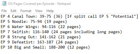 A while back I plotted out how many pages from the original run of Octeal were covered by each episode of the reboot, and I figured the 200ish pages I originally uploaded ended up being around 10 episodes. This episode, Episode 4, Canal Town... covers the most pages by a mile. The next biggest are Episodes 7 and 9, which cover about 24 pages each. Episode 4 covers 36 pages... anyway, I figure I'm about %80 done with Episode 4.... ONLY %80. Heheh.
