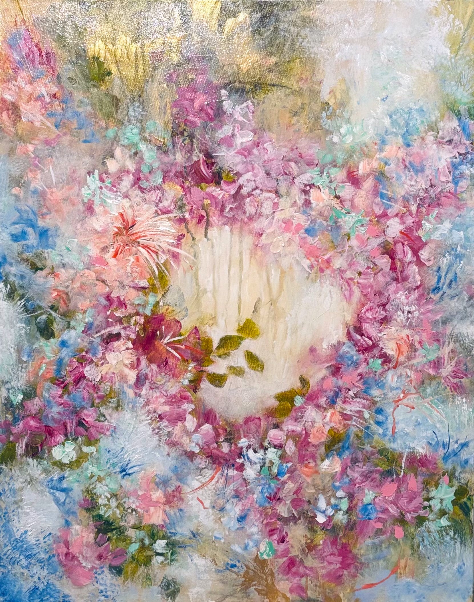 I want to mention that I'm still working on Milan Art--the painting below is in acrylics and oils on 24"x36" canvas (this was done before surgery). It's called Whimsical Flowers Lady (haha...this is the title for now). This is one of 20 that will be submitted for my graduation of Milan Art.