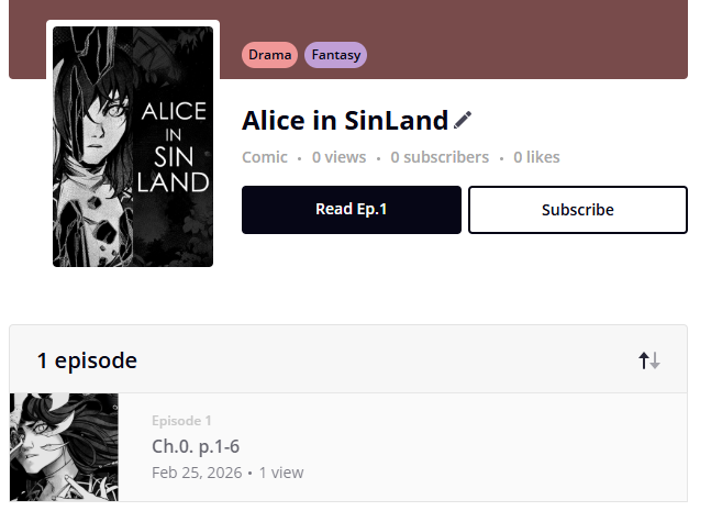This comic (Alice in a SinLand) had a strange path in the beginning, but i hope this path is over now as I re-released my story. So, from now on, I will be posting 3 pages per week. Apart from the 5 pages already released with the introduction.