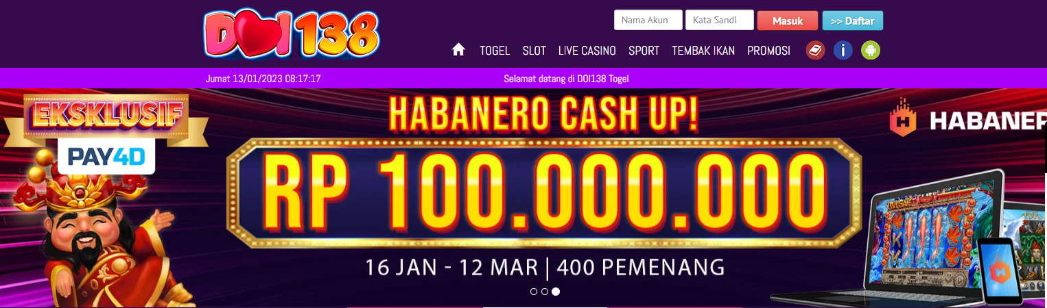 DOI138 adalah agen judi slot online terpercaya yang sudah terbukti membayar berapapun kemenangan membernya dengan cepat setiap harinya