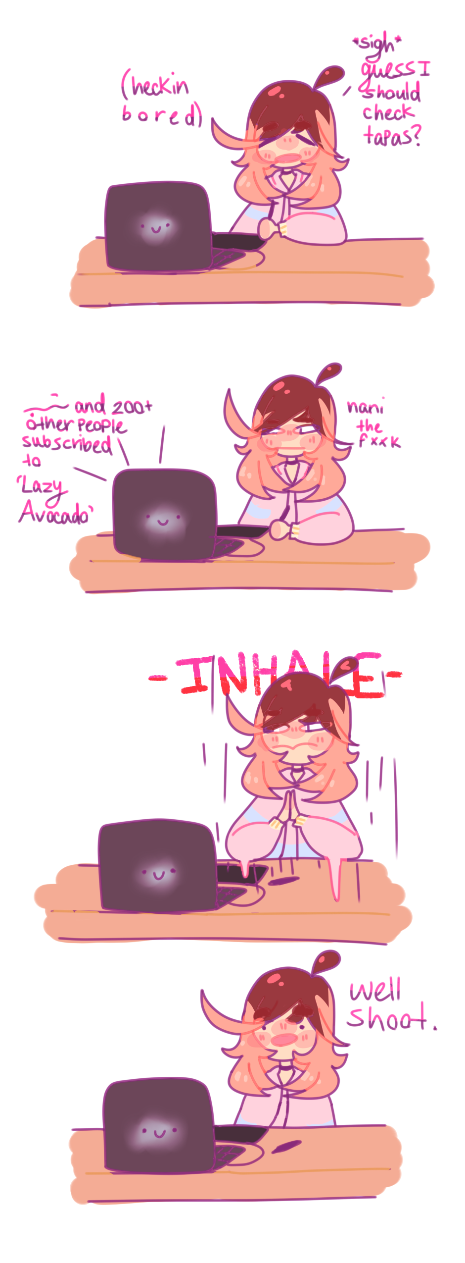 hhhHHH OMG what thE hEck why did my comic grow so fast?? This is WAY over a n y of my expectations I am speechless <33 thank you so much of 200+ subs??!! I just// aaa I can't believe it thanks so much to anyone who wants to read my crappy comics ;w;;