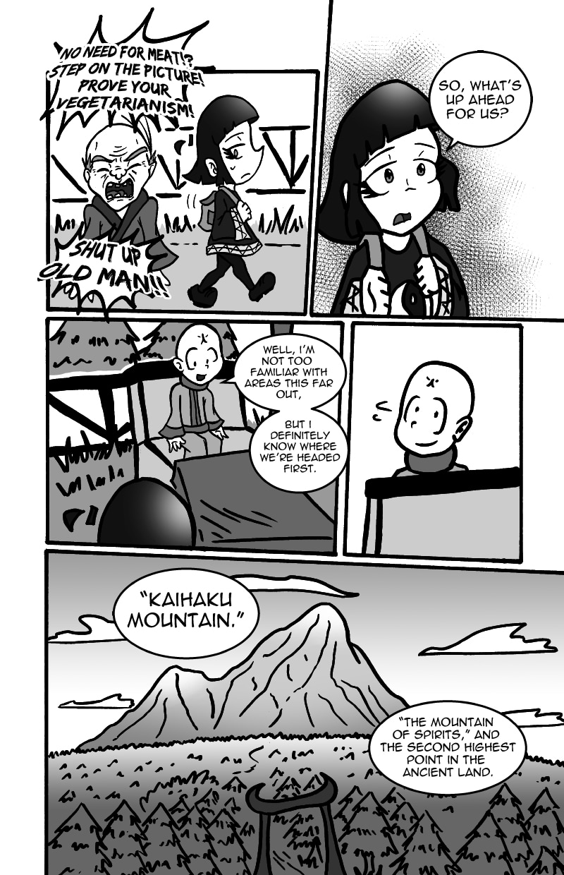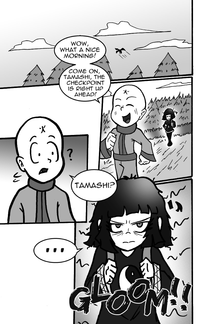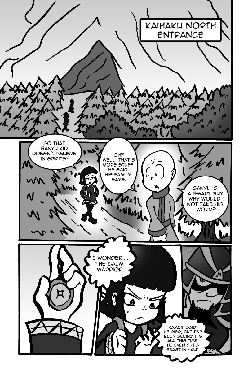 Tamashi and Sui-mo have just begun their travels. They run into their first obstacle on their journey: The mighty Kaihaku Mountain, a mountain that is said to hold many spirits and beasts in its caverns. Just before they enter the mountain, they encounter a certain boy.