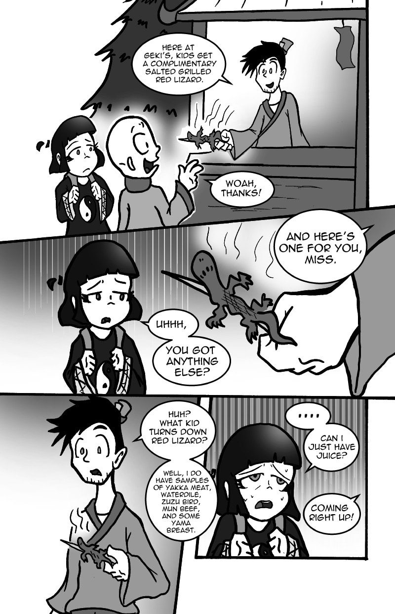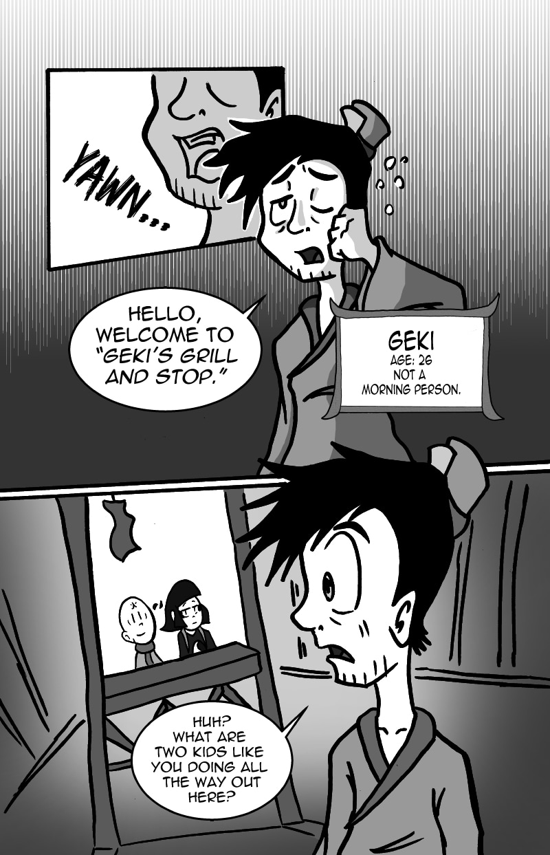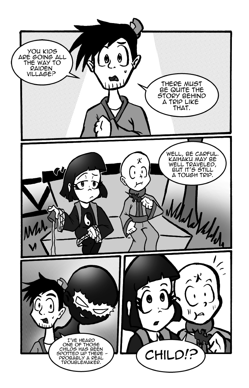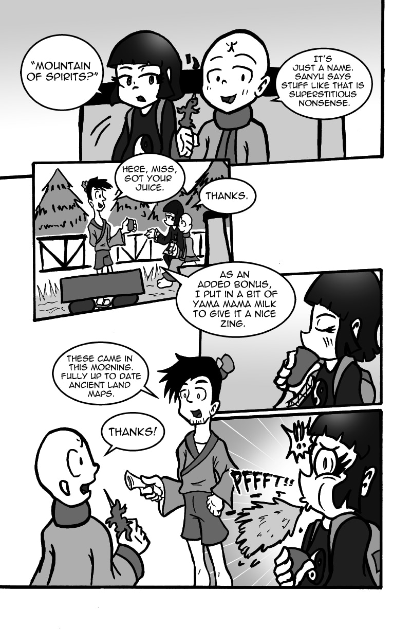 Tamashi and Sui-mo have just begun their travels. They run into their first obstacle on their journey: The mighty Kaihaku Mountain, a mountain that is said to hold many spirits and beasts in its caverns. Just before they enter the mountain, they encounter a certain boy.
