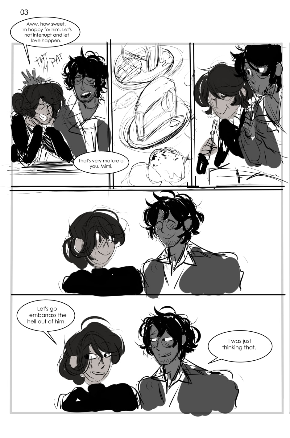 The other version of the holiday comic that I thought of was Mimi, Dalir, and Yosuke watching popular Northern City romance movies and having Mimi and Dalir roast them.