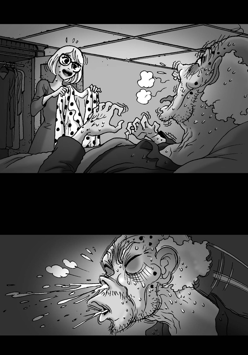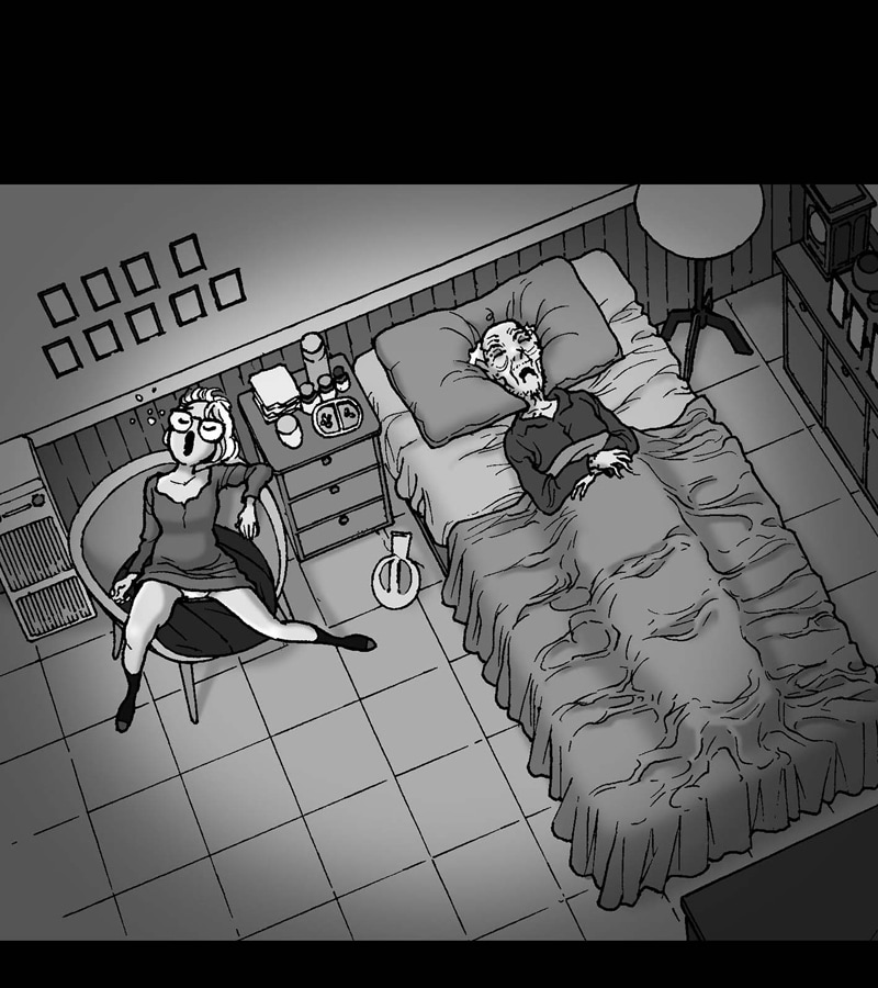 My opinion here: I didnt understand until I looked for the meaning of bedridden. Bedridden means that a person is confined to bed due to sickness or old age. The man looked at the cabinet signifying that it is near his death. The coat is then worn by the old man because he can feel the chill from his dying body. The girl quickly understood that he is cold and made him wear it. Then when the old man stood on the bed and got out of the room it was the best thing that happened to him even though it would result to his death. So before he died, he gave the coat to his daughter as a means of remembrance to him and as a thanks for giving him the chance to get out of the bed.
