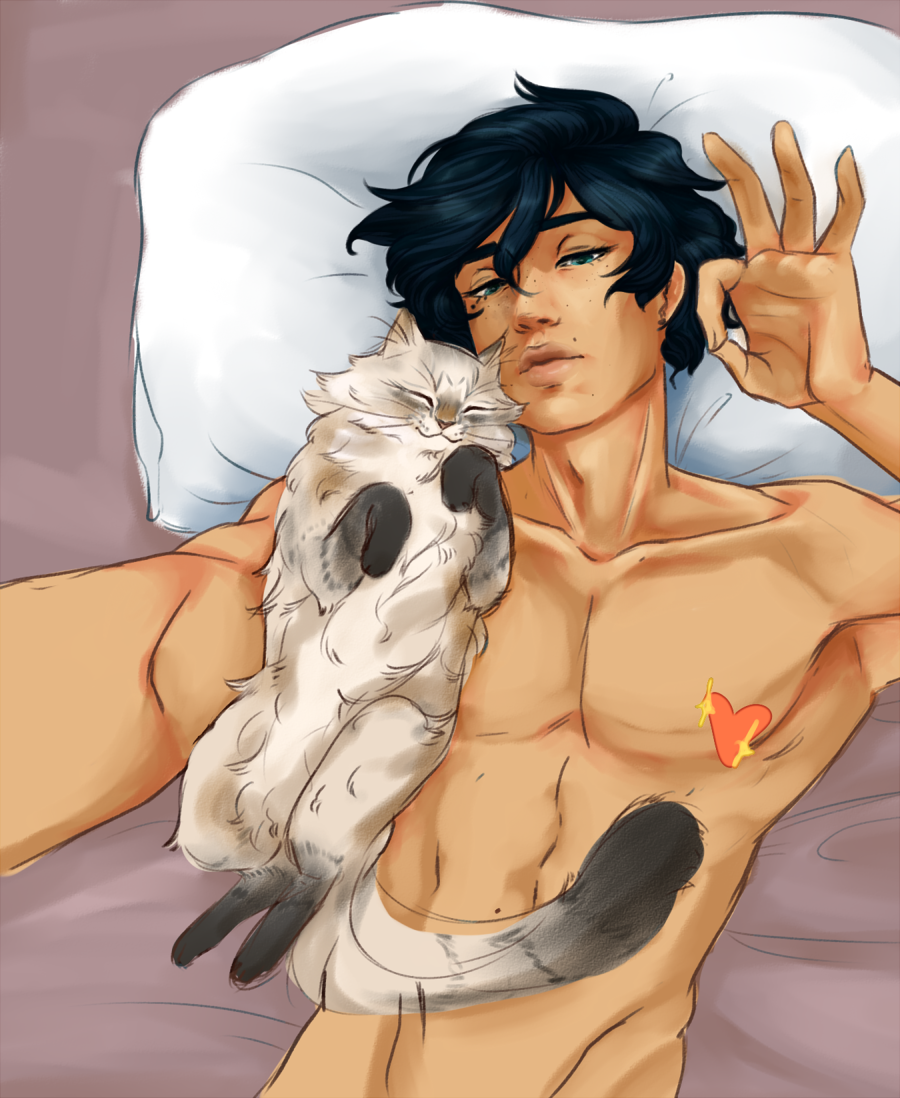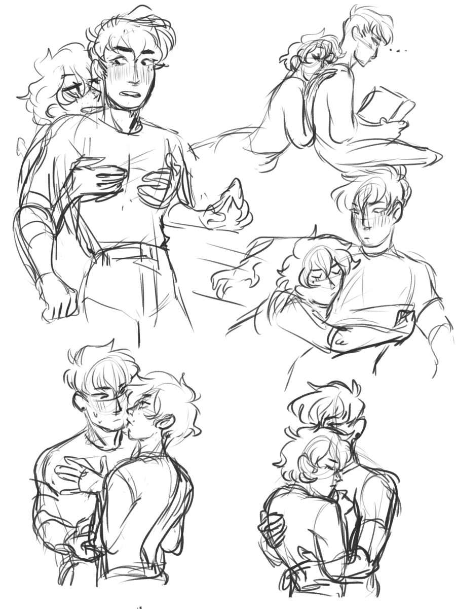 some sketches of a clingy dan and a piece of just dan taking a selfie with his cat Enchantment ~ * ~