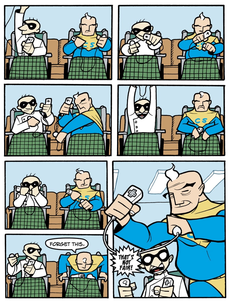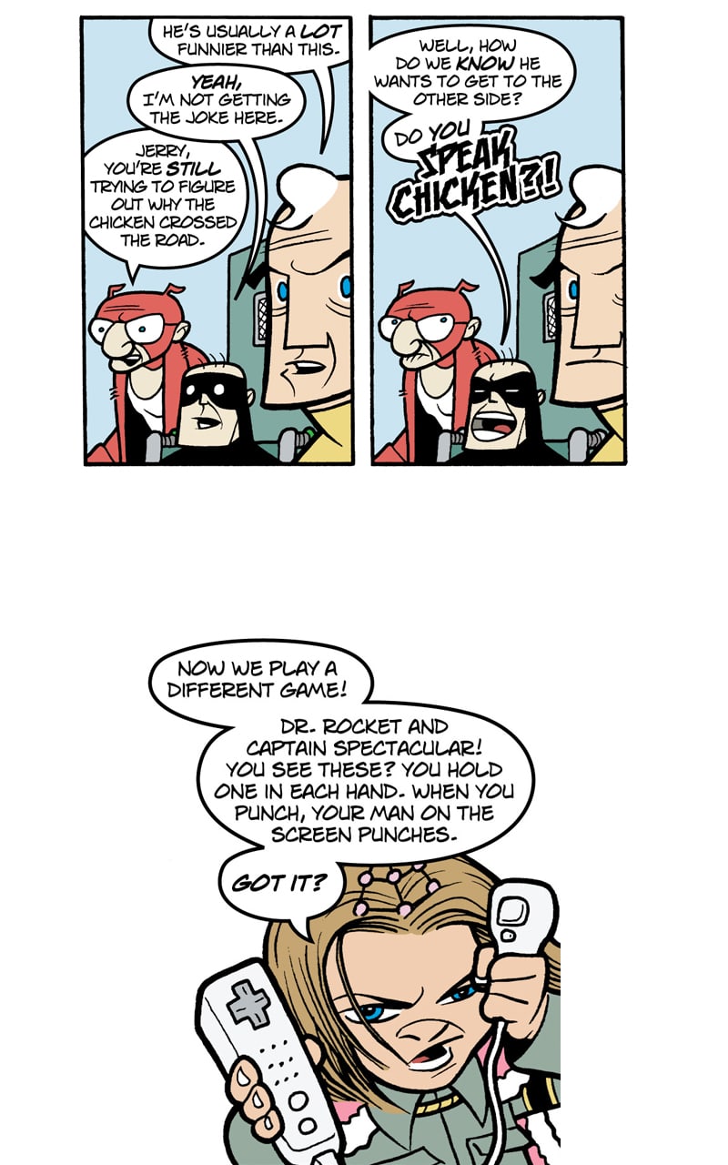 Where do old superfolk go when it's time to get out of the game? To Valhalla -- Home for the Supertired. But wait! Just when the heroic Captain Spectacular, the stealthy and sexy Spy Gal, the villainous Dr. Rocket, and the cranky speedster Swifty think they've earned their rest, new evils and terrible secrets rise to threaten everything. Created, written, and drawn by Brock Heasley.