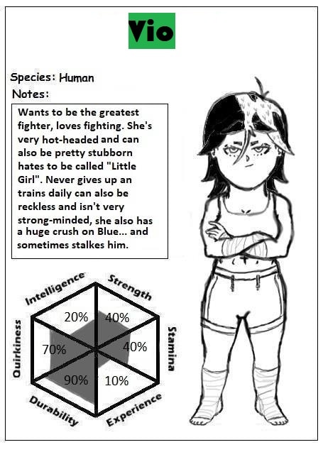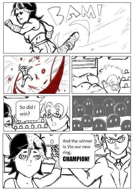 Vio a successful young fighter, after winning her tournament encounters a monster made by a mysterious scientist, Blue comes to help.