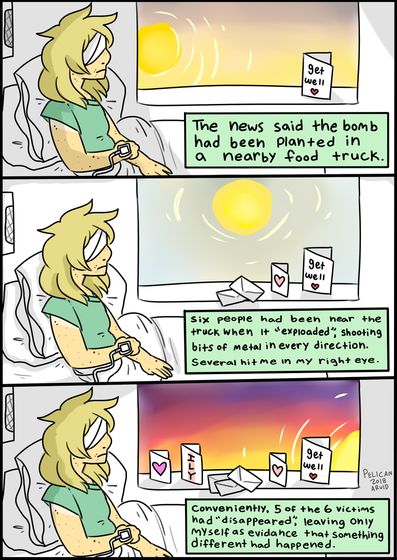 Wow! Can you believe that today is the first anniversary of Pelican??!! I am so happy to be working on this project and although I thought it would have been farther along by now, I am very proud of the amount I have produced! Thank you to my loving boyfriend and supportive friends, and anyone who takes the time to read my comic. It means so much to me that at least one person is enjoying the story I have to tell - and it's still barely started! Maybe this year we'll ACTUALLY get to meet Pelican themself (seriously, if we haven't reached that point in a year, all my readers are allowed one kick in my ass each). Thats enough rambling for now,, thanks so much for all the support!