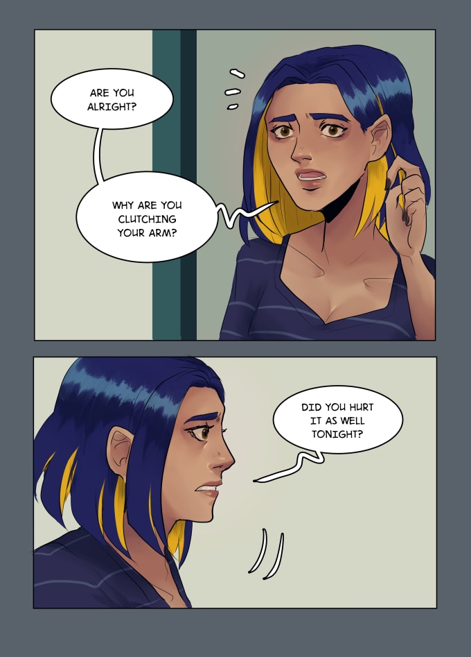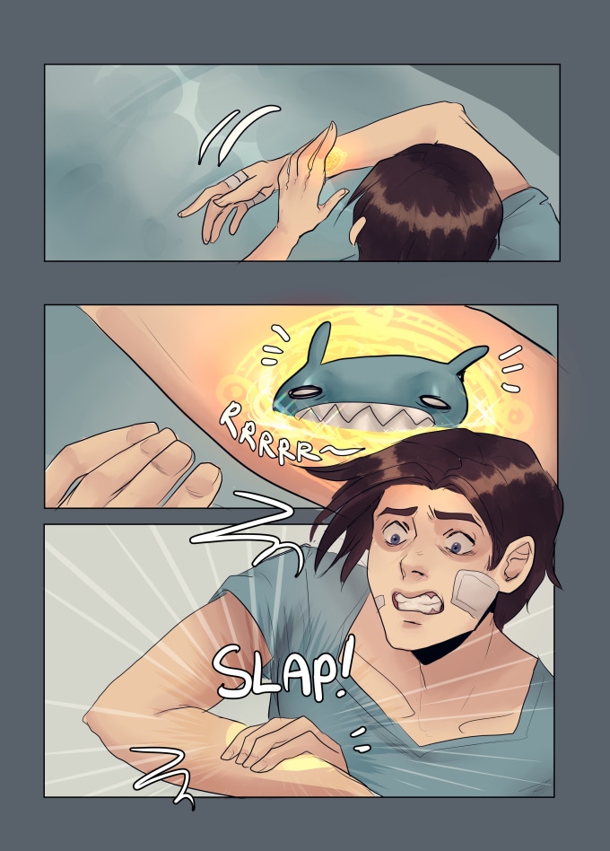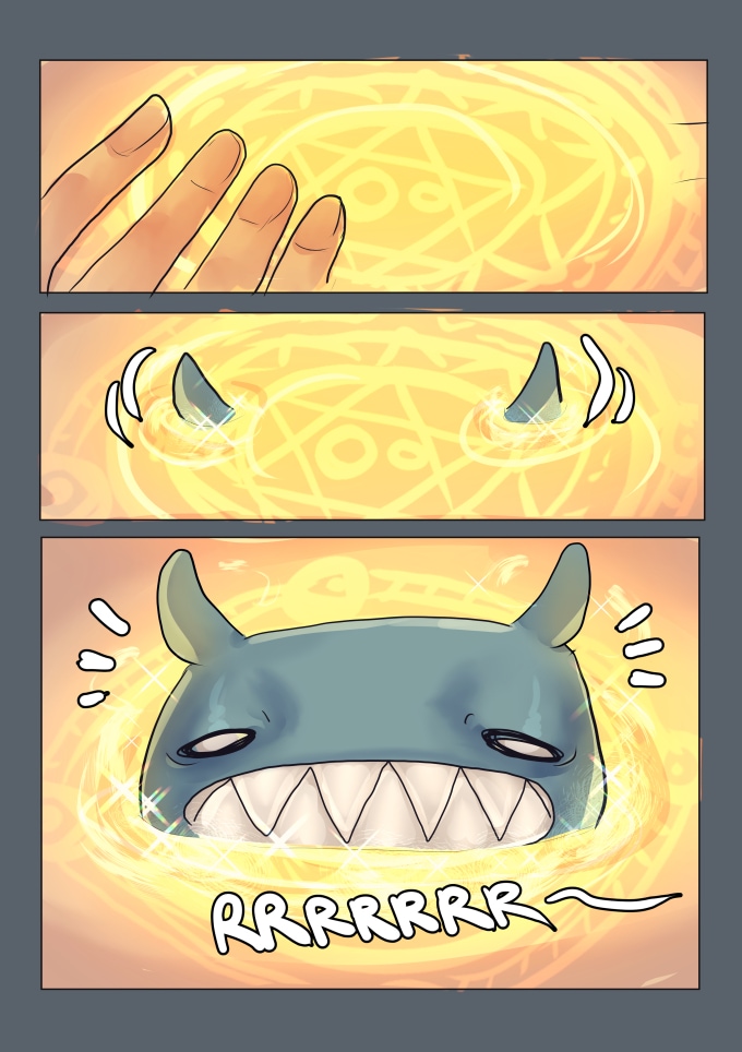 For such a desperate and terrible situation that demon is rather charming but that hug looks really creepy... nice character design and cool palete overall