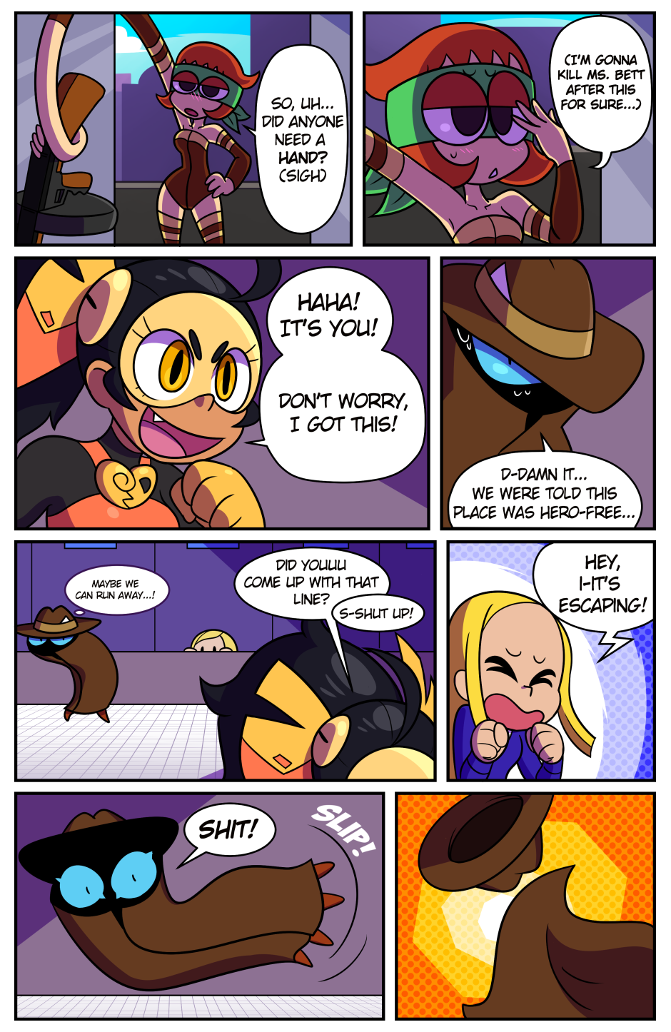Here comes ...the cashier girl? Looks like the criminal is the one who could use a hand.