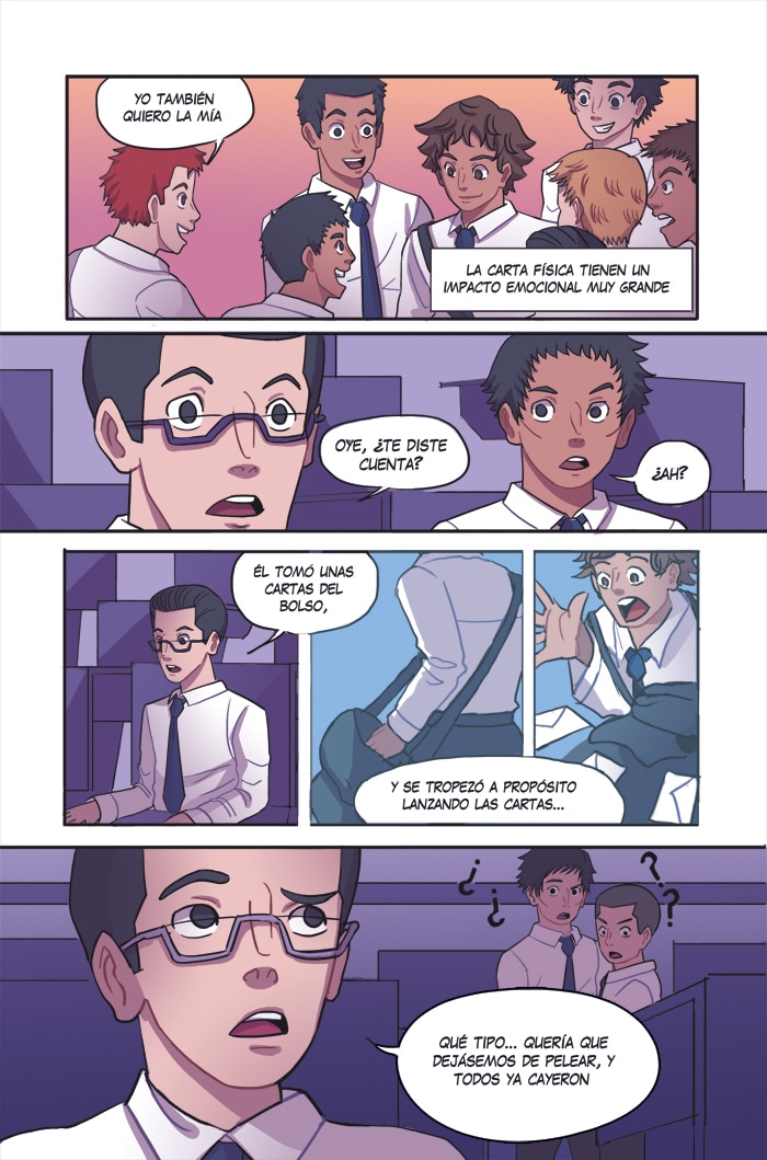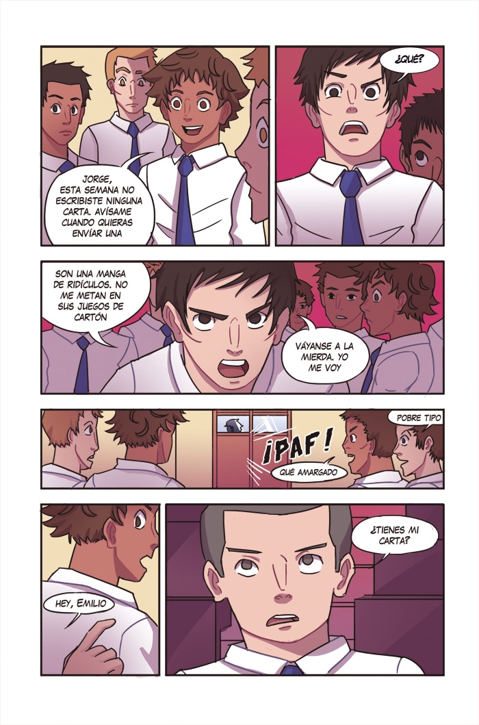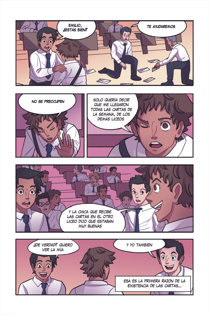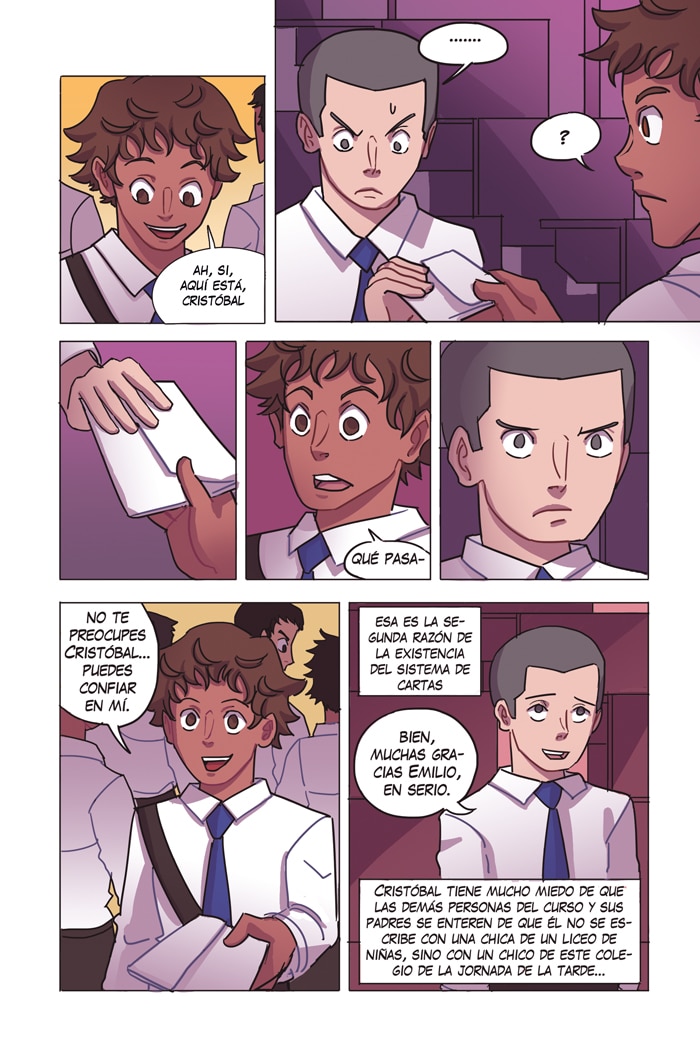 Emilio asiste a un colegio de hombres en el centro de la ciudad. Trabaja como cartero comunicando los distintos establecimientos del centro, uniendo parejas y cercanos gracias a un sistema que han inventado los estudiantes, que no se puede hackear ni espiar. Este es un cómic de detectives, drama y suspenso, en el que Emilio tendrá que poner a prueba en cada momento todas sus habilidades para que el sistema de cartas pueda seguir funcionando y ayudando a quien lo necesite.