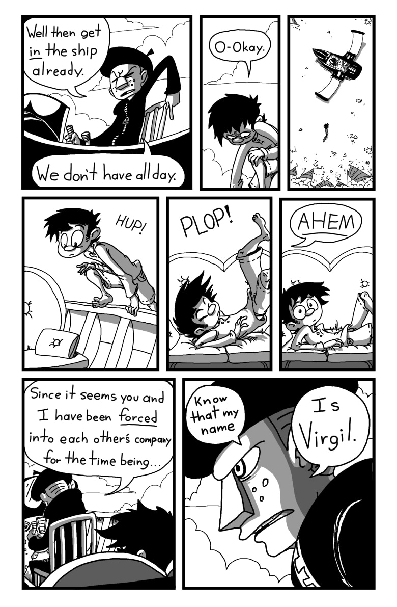 Virgil! Like from Dante's Inferno, where Virgil was an escort! That's just awesome since this Virgil is seeming to be doing the same! Great story so far! Really love it and your art style!
