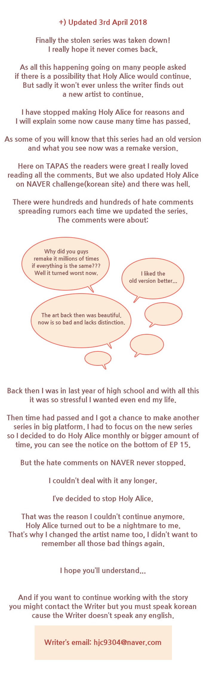 It’s sucks when people impersonate you, I hope is the situation is dealt with. I kinda had my hopes up seeing it’s been updated. Well, it’s all for the better! I hope you guys are doing okay