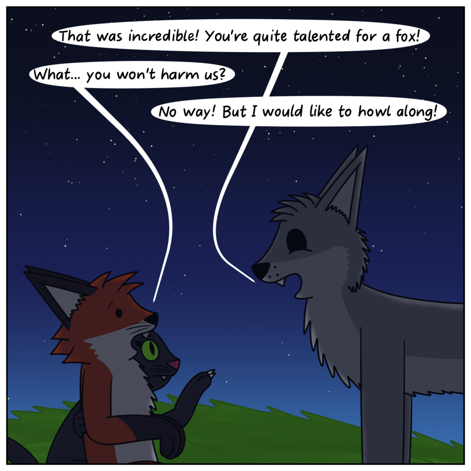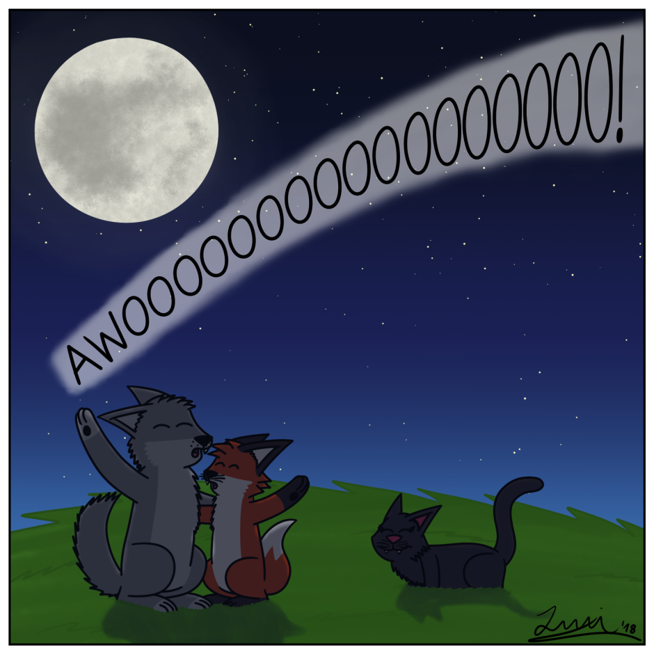 That's a lovely moon! :D Also yay, a wolf character!