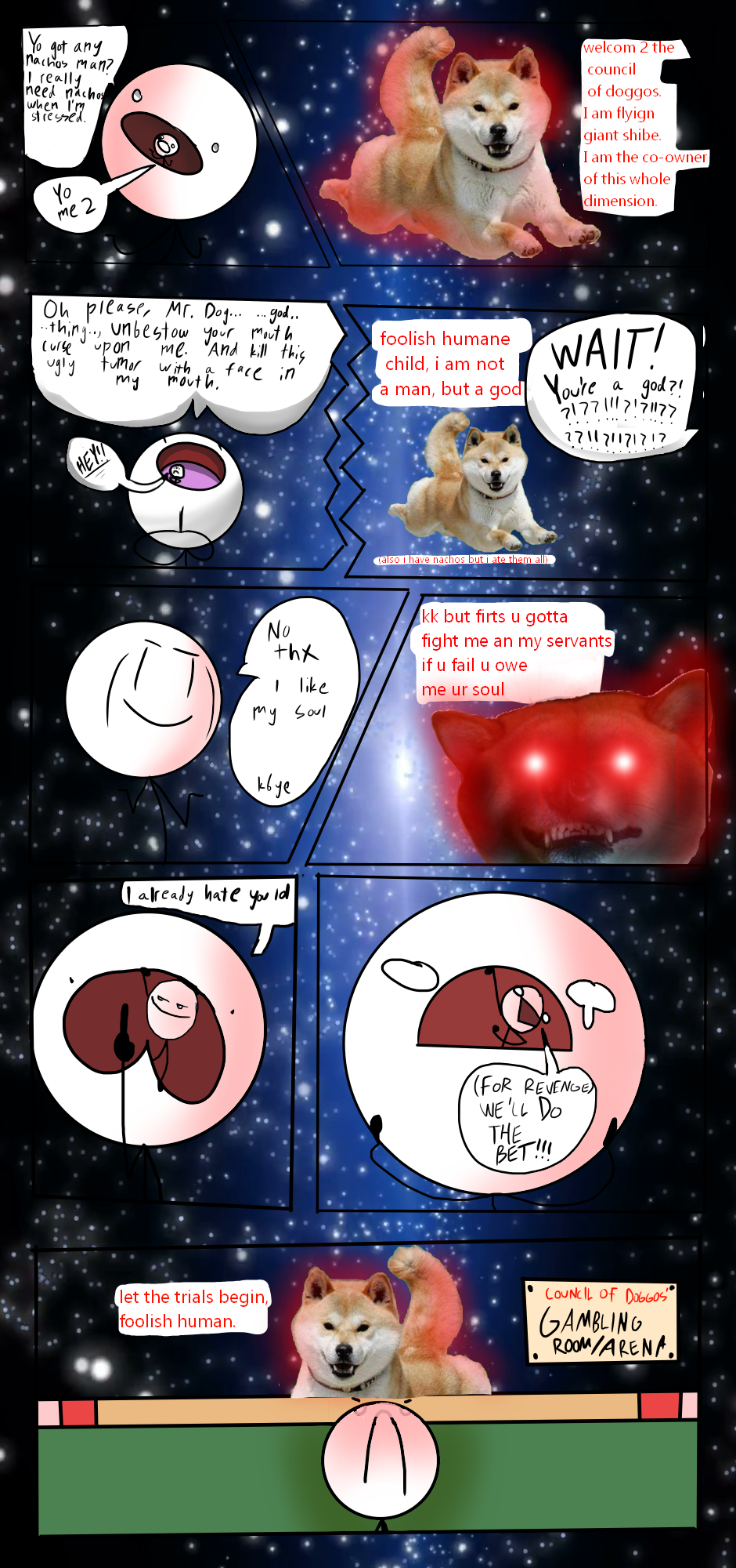 It seems like the chapter is about to come to a close, until we discover Mouth-Man doesn't like his new powers. Mouth-Man makes a bet with a god from the council of doggos.