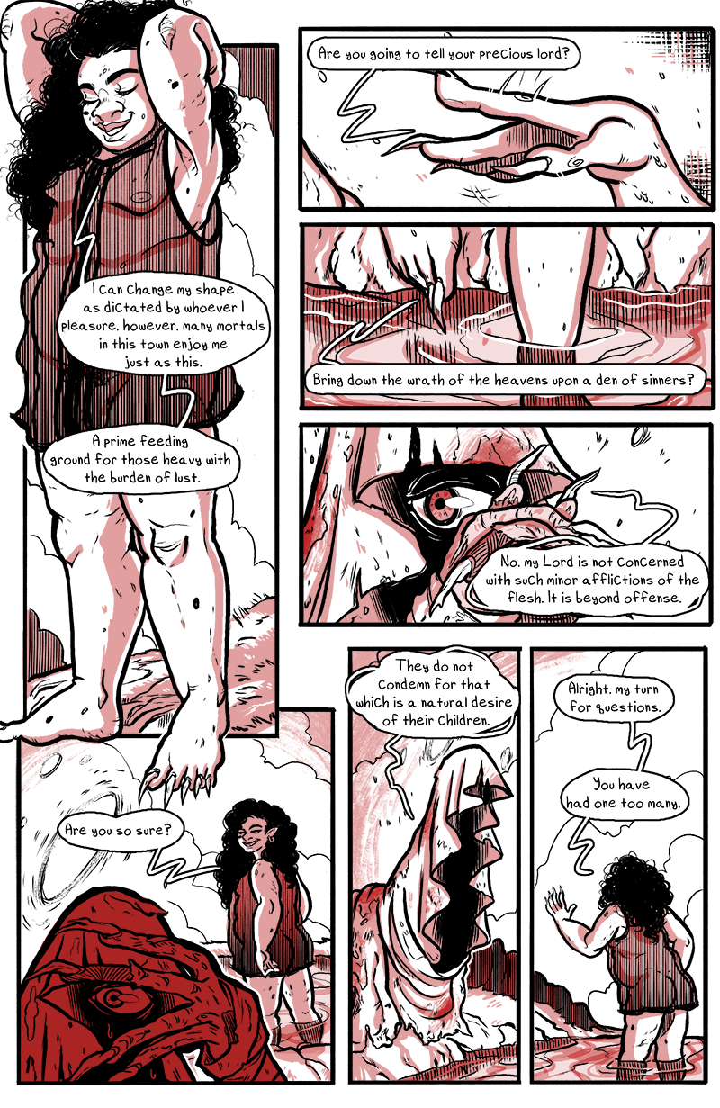 Archangel Uriel, Angel of Death, is enchanted from afar by a nameless devil of lust, and unsure what to do with these feelings-- so they act to get to know the devil. That is how one forms a relationship, yes? From there, the two stumble upon the stepping blocks, not sure where it's going or what comes with the territory. Both must come to realize what it means to be in love.