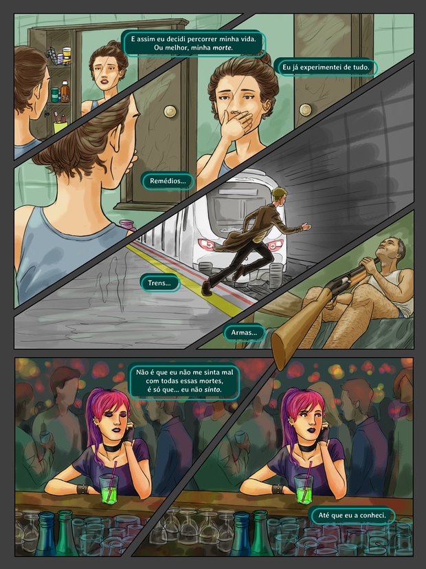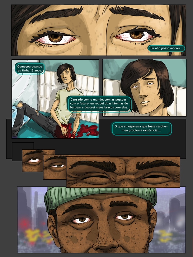 Uma pessoa que não pode morrer tenta achar sentido na sua quase vida nesse quadrinho escrito por Pedro C Almeida e desenhado por Fred Lucas.
