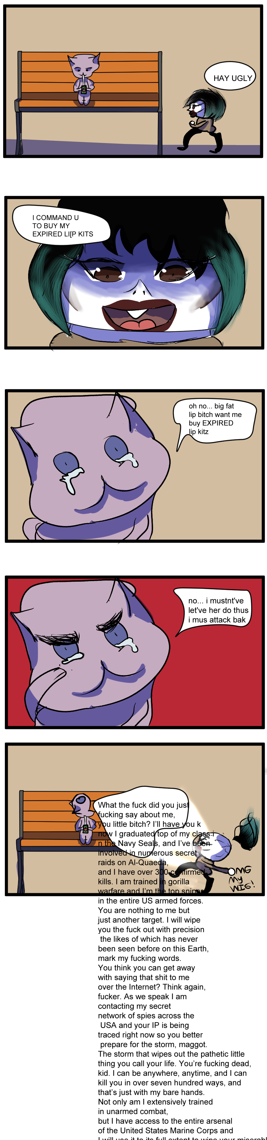 lucy meet big lip hoe harrasing thjem to buy thjeir ugly expired dried out lip kits!!! fight bak!!!!!!!!!!!!