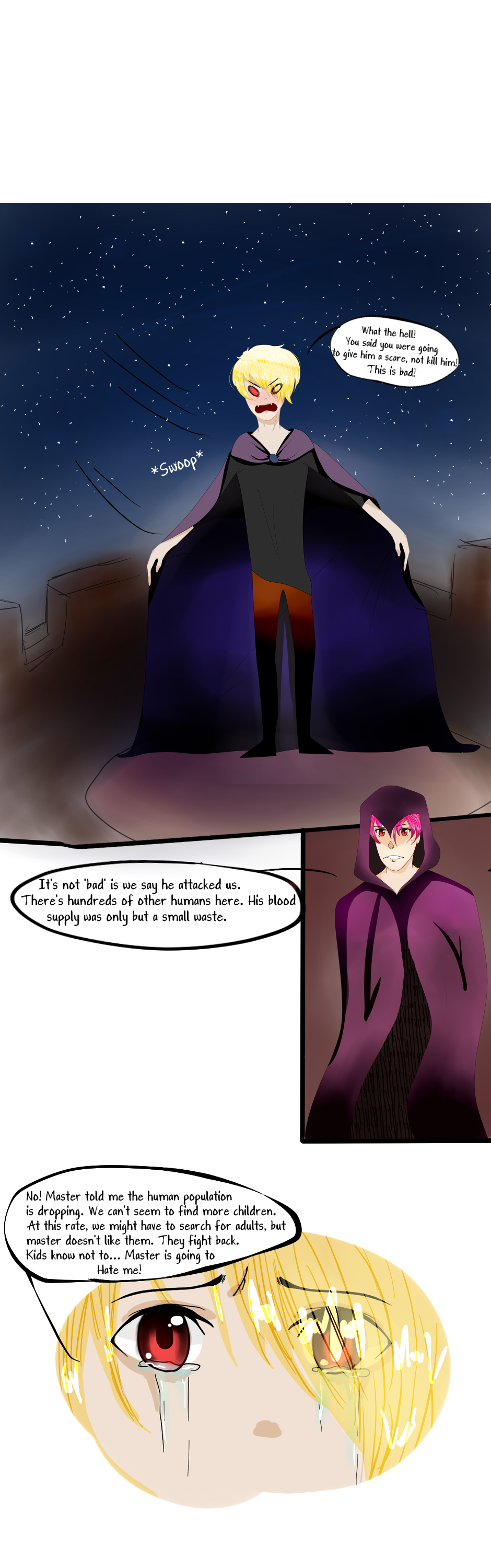 So... I was looking at my comics and realized this is the first page of Dystopia in 2018. I am so sorry ;_; I haven't given up on any of my comics, it's just I keep working on my style and it's growing annoying for me with how the characters look different almost every page T~T However, here are some new characters :D