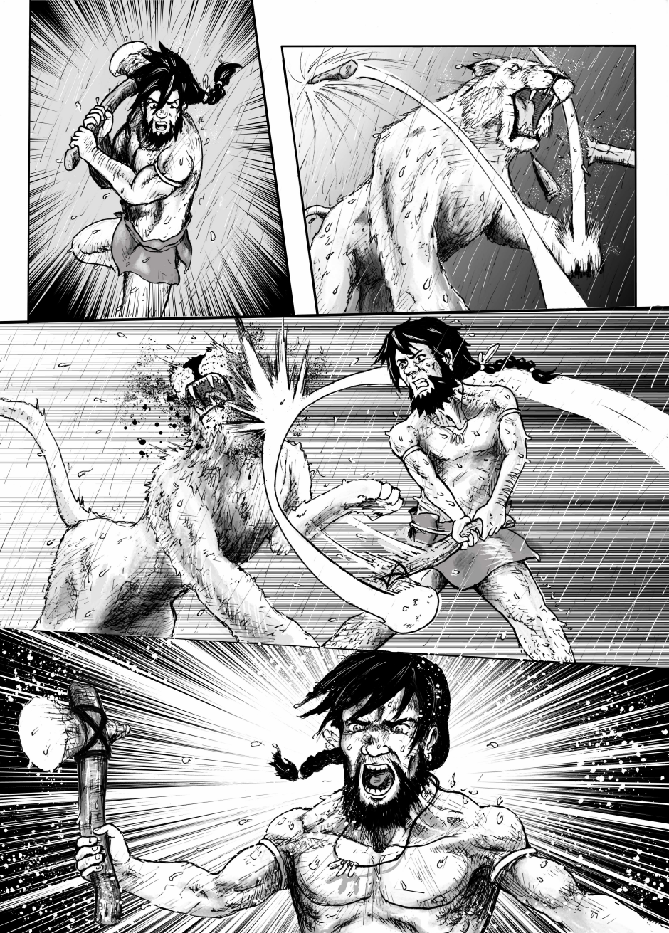 #hunting #caza #lion #prehistory #prehistoria #rock_age #Edad_de_piedra #Paleoltico #Homo_sapiens #rain #lluvia #leon #storm #Fight