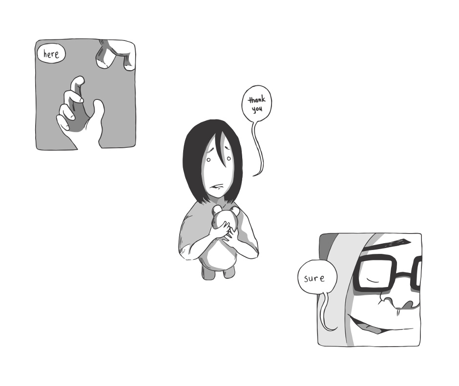 the continuation of the mini comic...Penny receives a teddy-bear from the nerdy clerk...