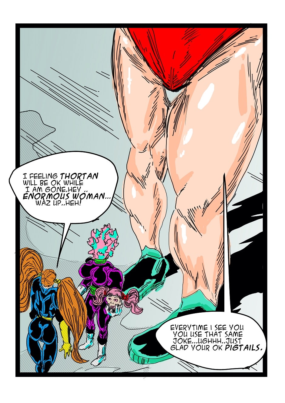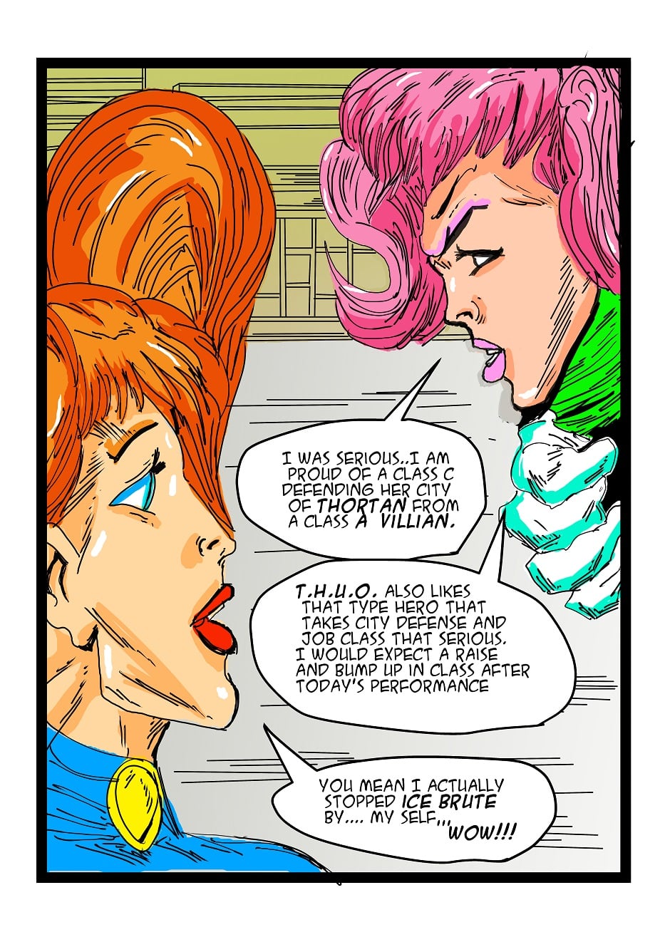 Captain Pigtails is a story about a professional superhero for small city called Thortan.