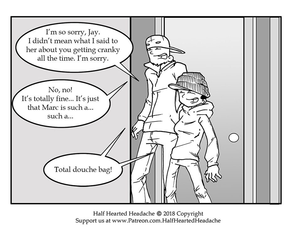 ARC 2 of Half Hearted Headache follows a slice of life story about unlikely friends in the small city town of Elgin, IL. Following the day to day lives of people, their interests, and their relationships. Plus a talking cat... and a ghost... and mysteries galore!