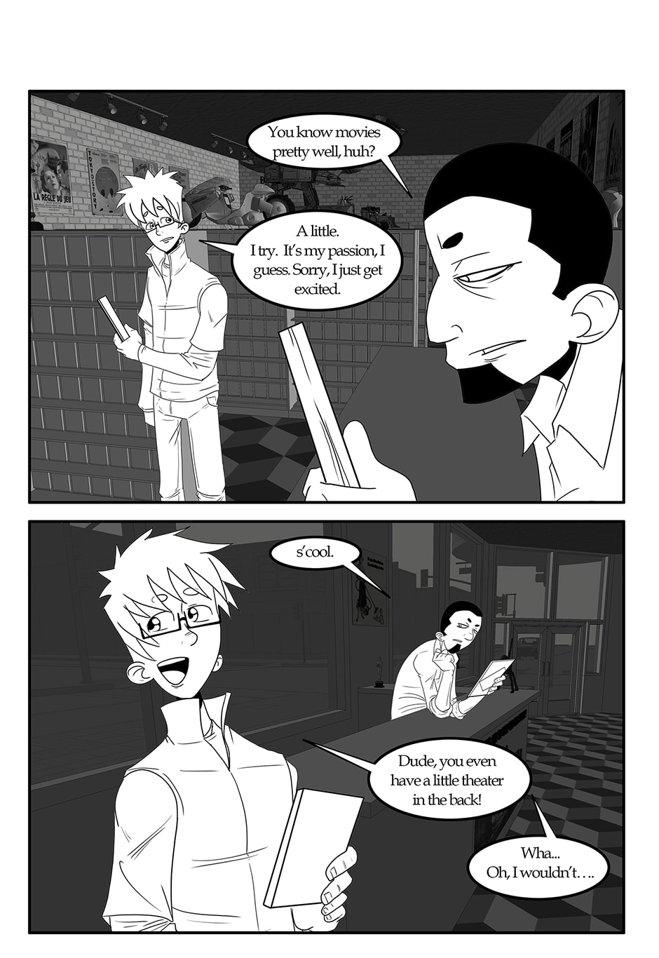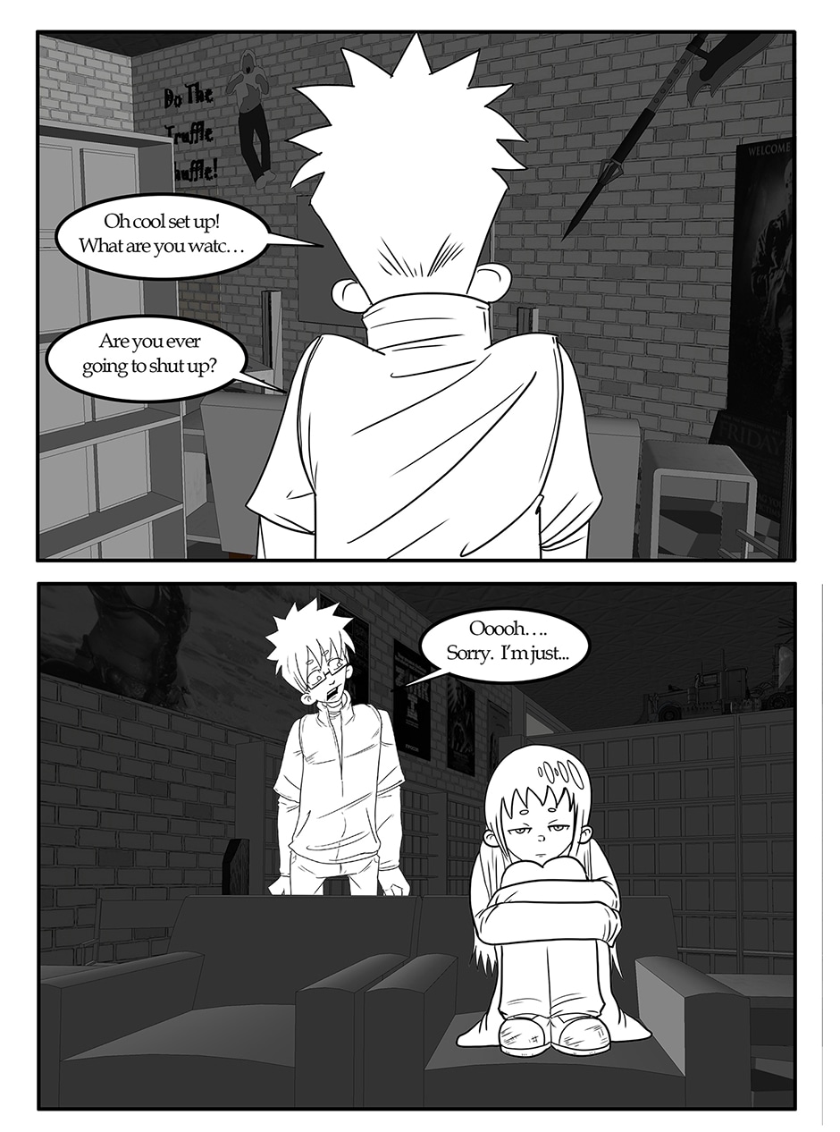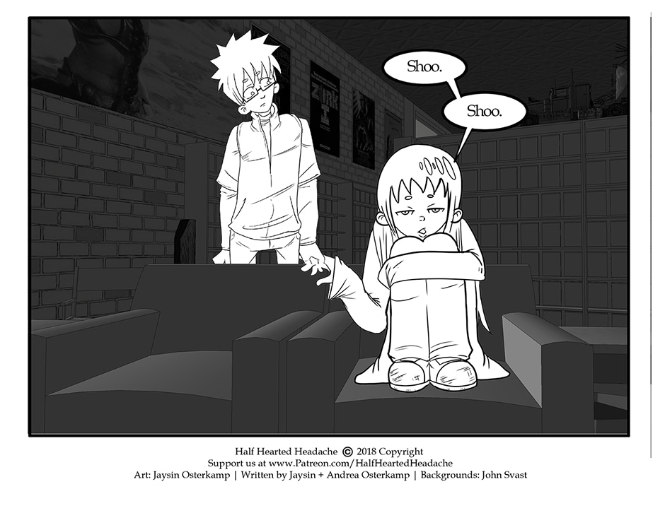 ARC 2 of Half Hearted Headache follows a slice of life story about unlikely friends in the small city town of Elgin, IL. Following the day to day lives of people, their interests, and their relationships. Plus a talking cat... and a ghost... and mysteries galore!
