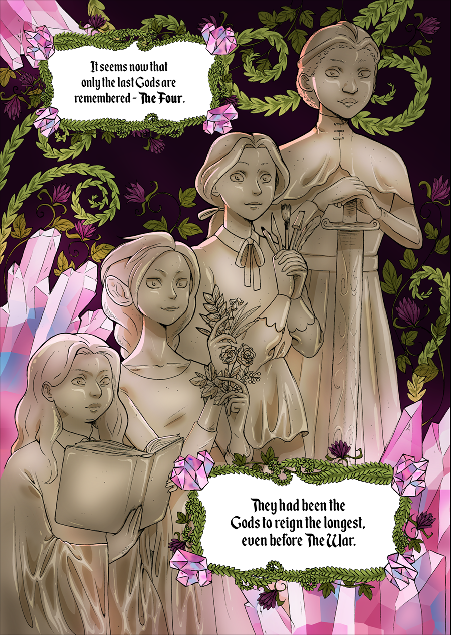 200 years after the Four Gods disappeared, the world is in dire straits. Tula knows all too well the new threats that are terrorising the known lands, and Pip is without a memory of her past but in possession of a mysterious, strange book in an unknown language. Together, they quest to find the Gods again to restore peace, and to get the answers they'd been looking for since they first met.