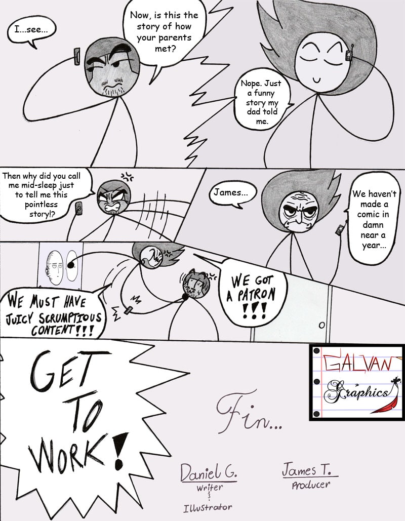 Two seniors in high school decide to chase their dreams of becoming the owners of the next big Comic Book Company...well one of them is. The other was just dragged along. Join Daniel and James on there quest to become the next big comic book company! GalvanGraphics. (WARNING: Strong language)