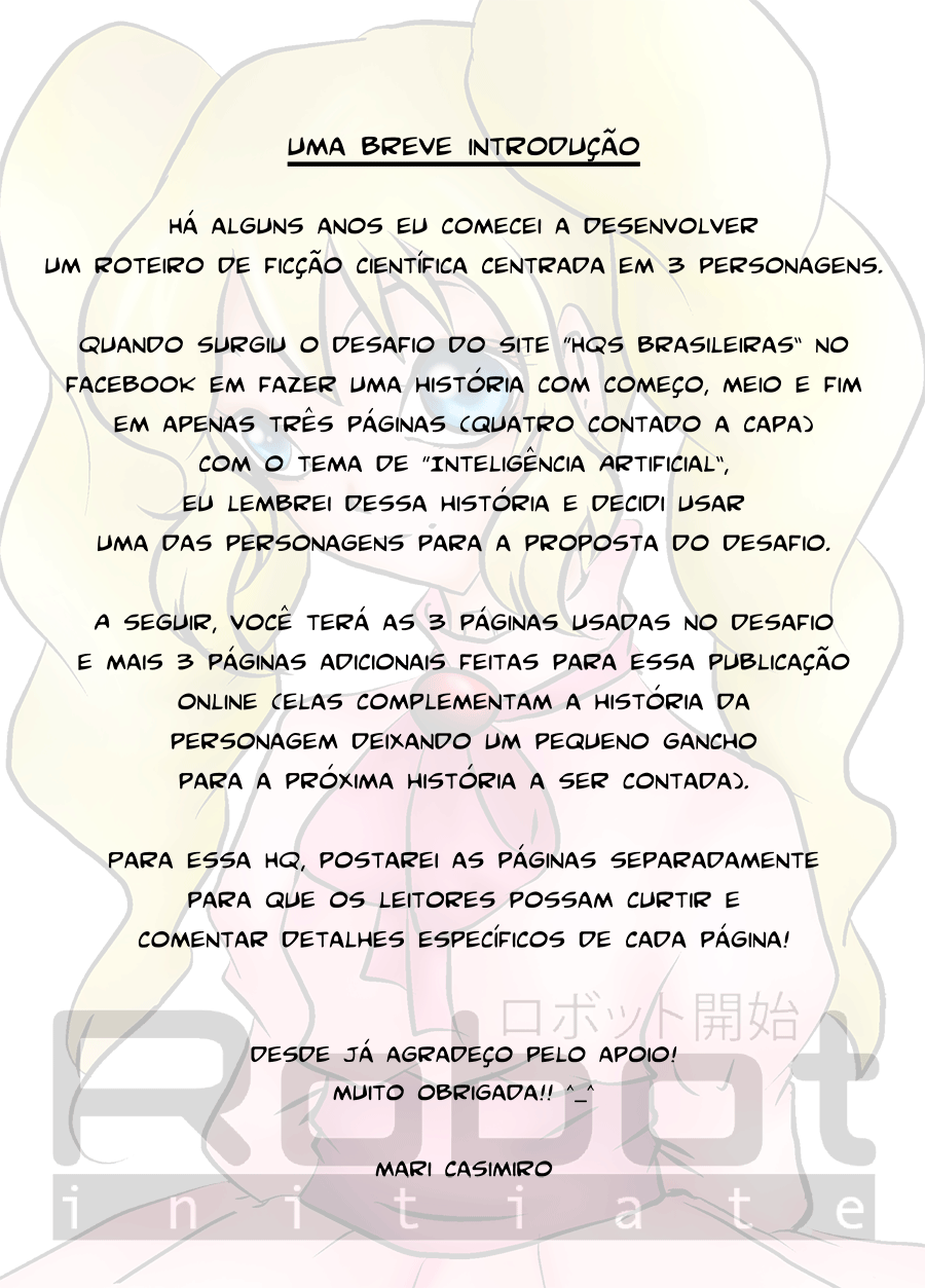 A trama de Robot será dividida em 3 arcos, o primeiro é [initiate], postando uma página por semana (toda quinta-feira).