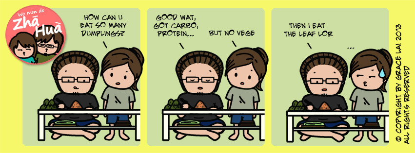 These comics are based on actual, silly conversations between my boyfriend and I. The name 'Zha Hua' (炸话) is not an actual word. It was created to convey this meaning: words that make you 'zha dao' or 'zha dou'. In English, it basically means words that leave you speechless. Or gobsmacked. Dumbfounded. Take your pick.