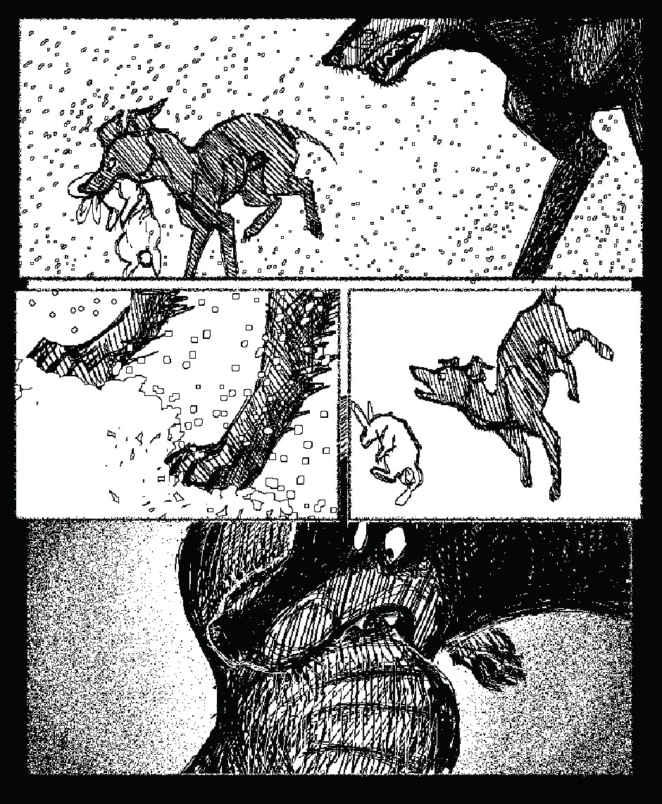 #dog #doberman #italian_greyhound #Dystopia #post_apocalyptic #pixel_art #black_and_white #snow #rabbit