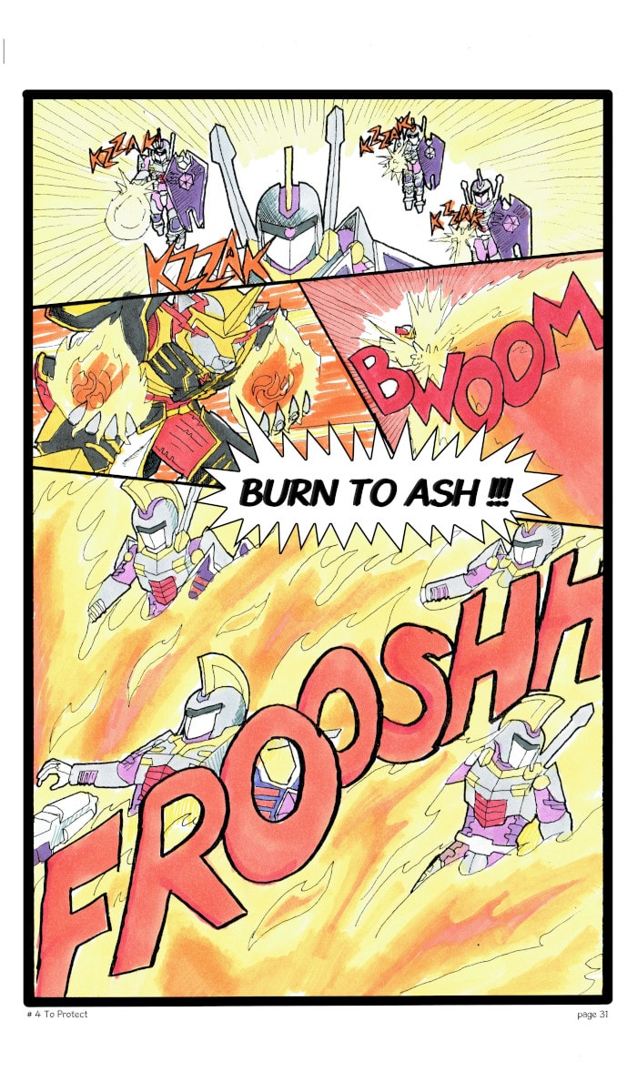 In this 4th comic the adventure begins with a chance meeting for one of the knights ,a meeting that will begin a quest for free the earth from the reign of Apocolys