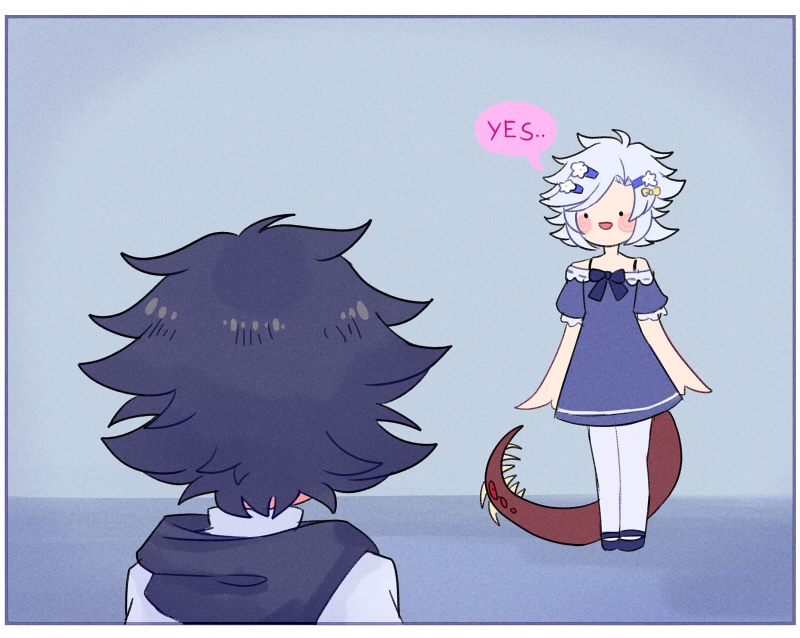 He looks so cute in that dress! It really suits him.