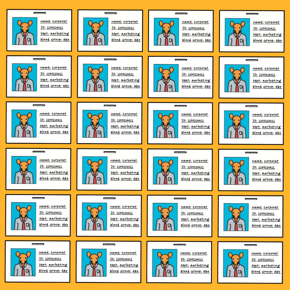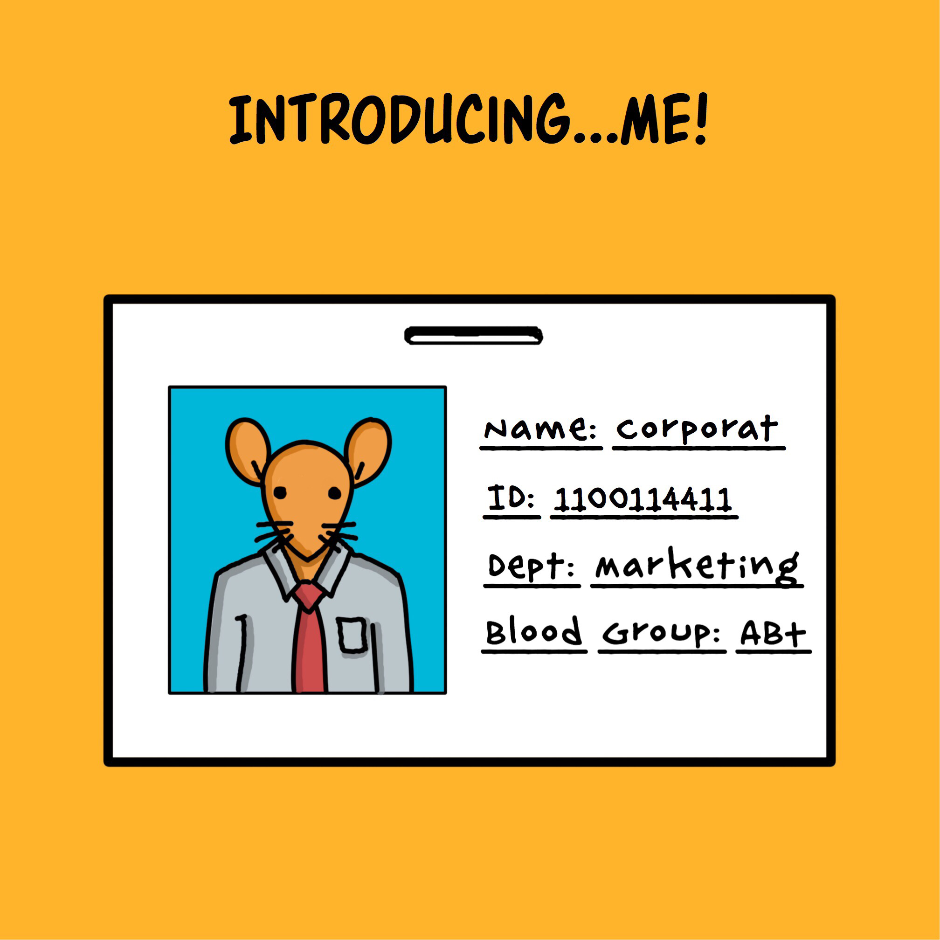 Introducing me, a corporat, like a million others, unidentifiable in the corporat crowd, just a number