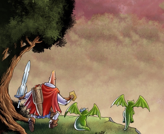 The Middle Age follows the slightly older knight Sir Quimp of Grawlix on his quest - with the "help" of the cursed sword Maledicta - to rescue his love from the Kingdom of the Dragons. The Middle Age has been nominated for a 2017 Eisner Award and both 2018 and 2017 Ringo wards for "Best Webcomic"