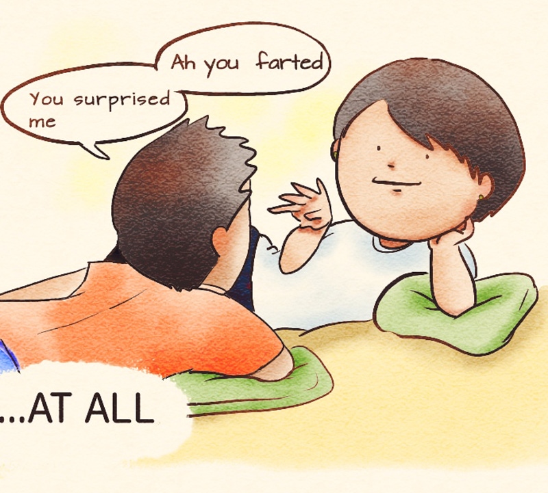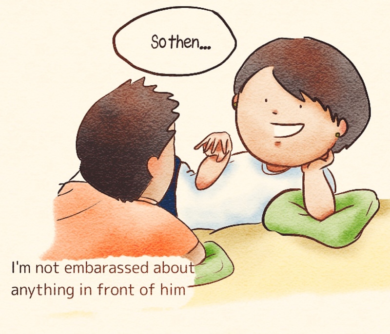 付き合う前に「目の前でおならしても引かない彼氏が欲しい」と言っていたことを思い出しました。 I remember saying, “I want to date with someone I can fart in front of”.