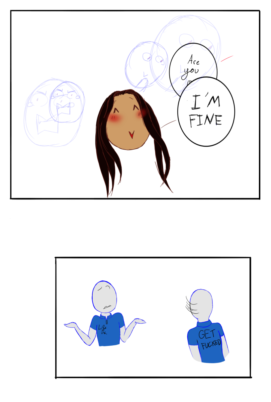 Heyo!! Im currently in the middle of my semester and im dying. Im still trying to find a style for the comic that i like and is calm enough to do. Im learning quickly enough i think? But ye! that explains why the style keeps changing for each (sporadic) update. I actually have a certificate in both graphic design and animation. One would not tell by the works iv'e done thus far....Meh, im thinking of trying a simple animation for here but im not too sure how to yet...