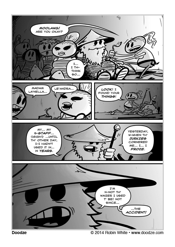Doodze is the story of a race of tiny people caught up in an adventure much bigger than them. The Doodzes are living a simple, quiet, carefree life, safe within their walled-in village. But circumstances beyond their control begin to force them to go outside into the great unknown, where danger and adventure await.