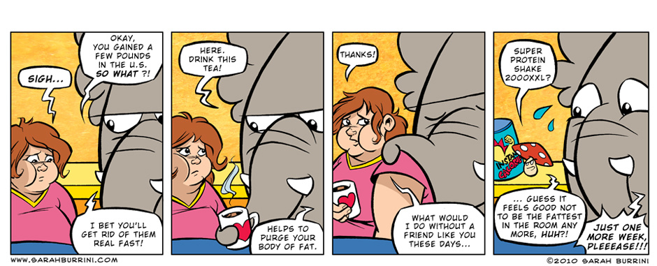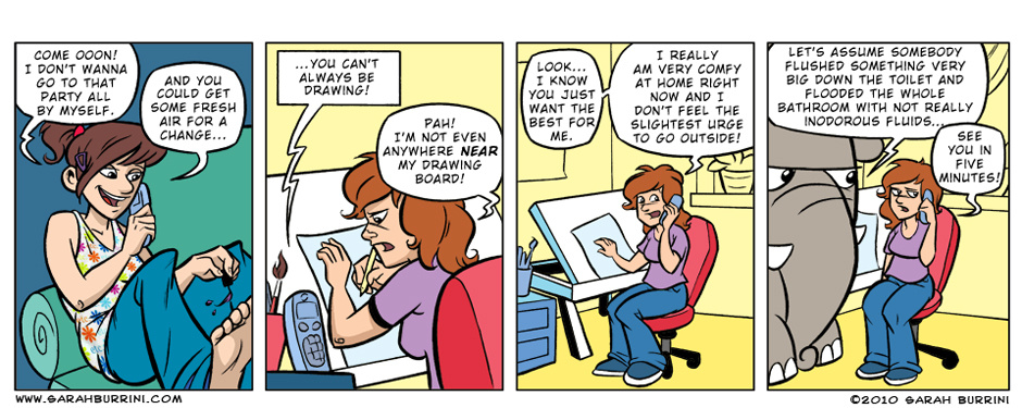 Life Ain’t No Pony Farm is a semi- autobiographical, but absurd comic strip about a cartoonist living together with an elephant, a mushroom and a pony.