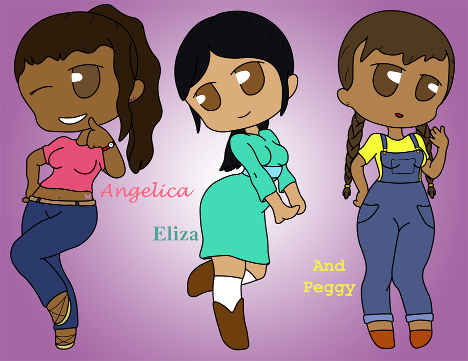 I've been listening to the Hamilton soundtrack a lot lately, and have been toying with a modernized setting. I also just really wanted to draw Peggy in overalls.