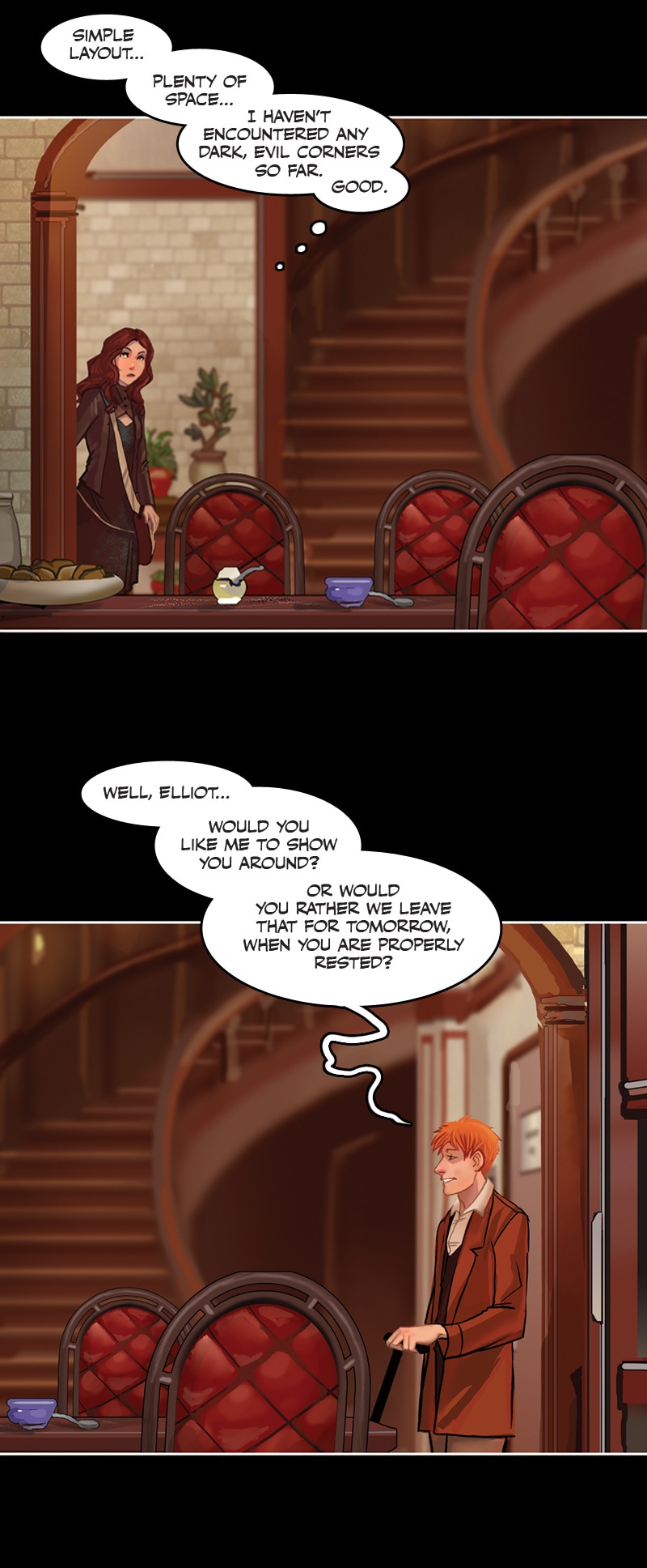I also love your characters. Is there a trick to make them so real? (I have my own archetypes I can work well with but I doubt I would be able to depict someone like Elliot with doubts, short attention spam and everything.)