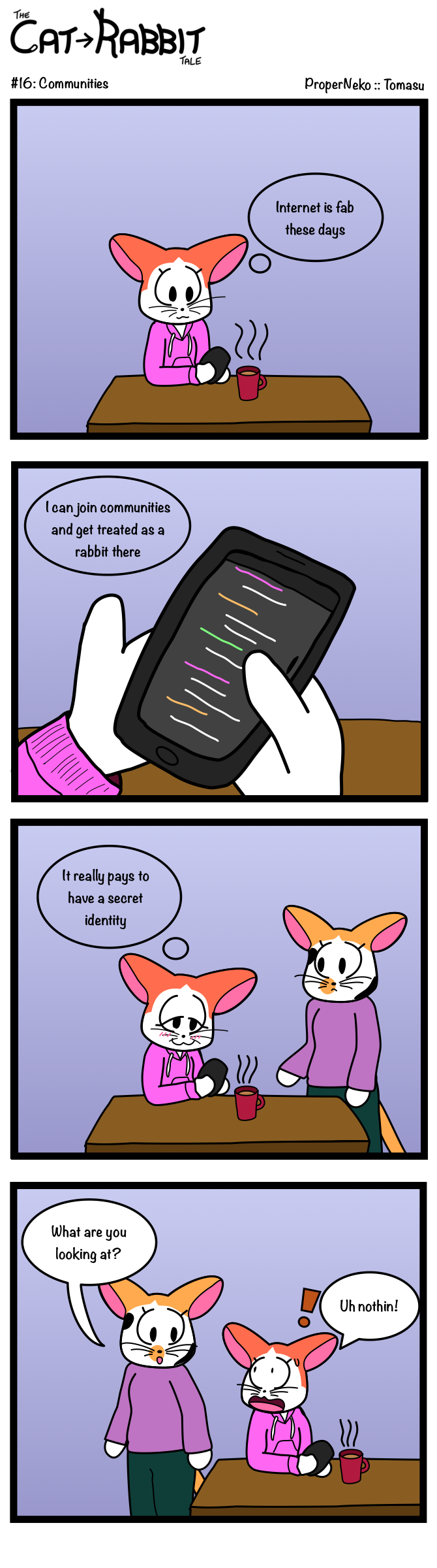 16: Communities The growth of internet and online communities has brought us closer together than before. They can also be a good point to try out your new identity, or even explore your new interests.