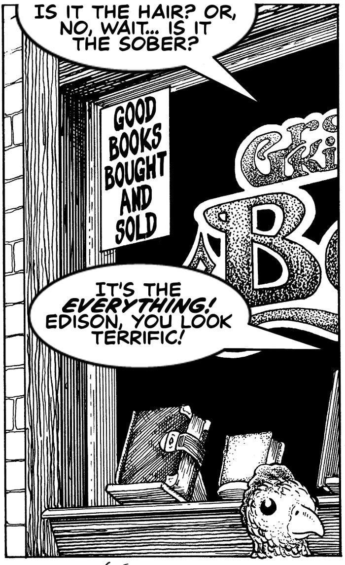 Follow the misadventures of Larry, his cheerfully alcoholic girlfriend Edison, and Anya, the children's librarian who loves them both, as they try to make a romantic triangle work with the help of Stephanie, the adorable robot, and Toivo, Larry's gay Neanderthal best friend. And the unknown creature Robespierre, who is cute.